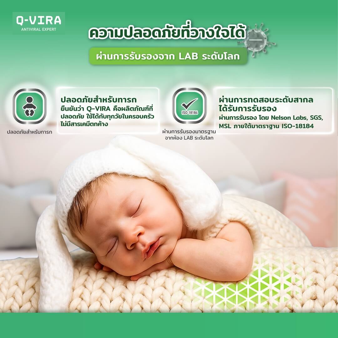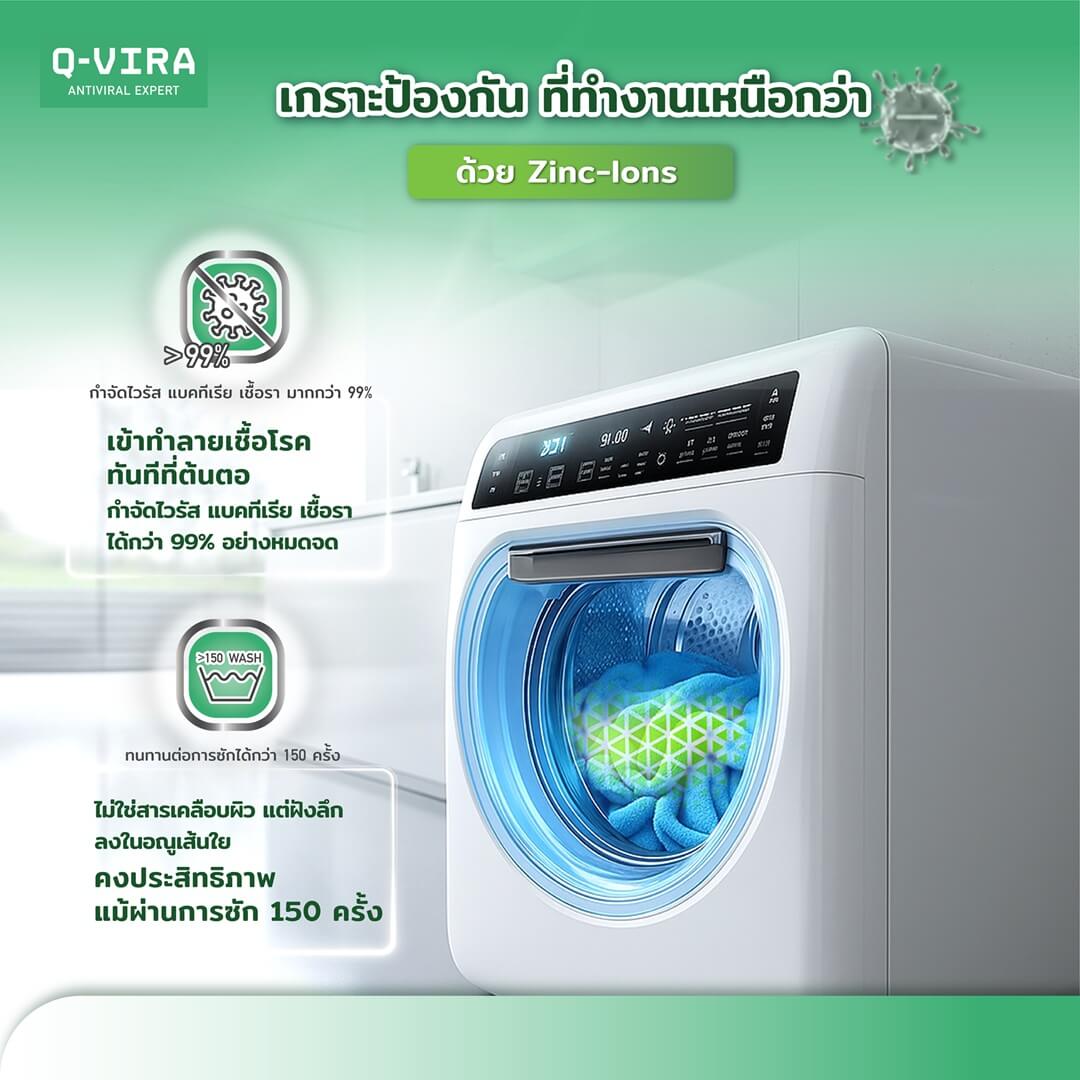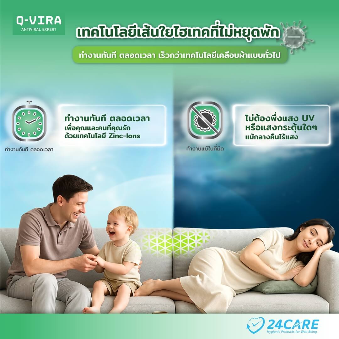 Q-vira กำจัดเชื้อไวรัส แบคทีเรีย และเชื้อราได้มากกว่า 99% มอบความสะอาดและความปลอดภัยต่อเนื่องในทุกการสัมผัส